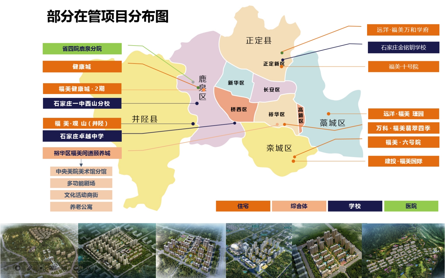 管理面积涵盖300万平米高档住宅区、5万平米商业体等多种业态。管理项目有【建投·福美国际小区】、【健康城】、【旅投福美小区】、【福美瑜瑾园】、【石家庄西山学校】【十里春风】、【凤凰壹号院】、【隆福·星河城】。