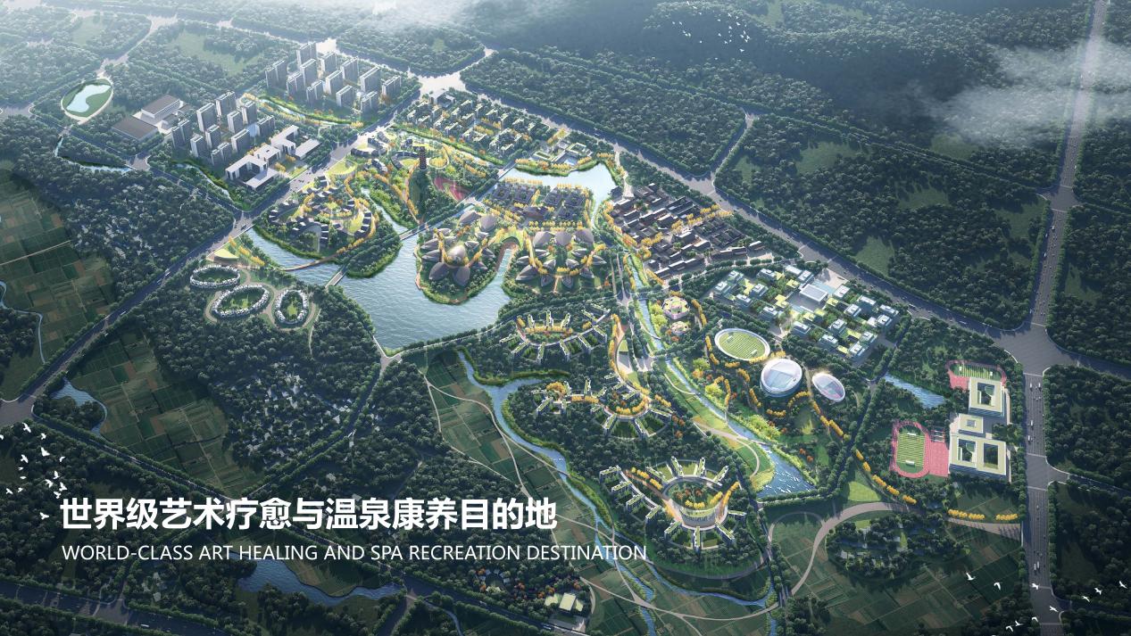 总规划用地面积约3351.3亩,其中城市建设用地面积约1356.9亩。以健康产业为核心,融合发展艺术、戏剧、温泉三大特色产业,以温泉康养为基底、以艺术文化为特色,融中医疗愈、生态旅居、学院生活,建设宜居宜养的温泉康养城。社区从人性与健康的角度出发,建造优美的园林景观,让每一位居住者尽情享受绿肺富氧生活的舒适;配备完善丰富的内部配套,满足全龄业主的多方需求,打造国际艺术健康慢生活目的地。
