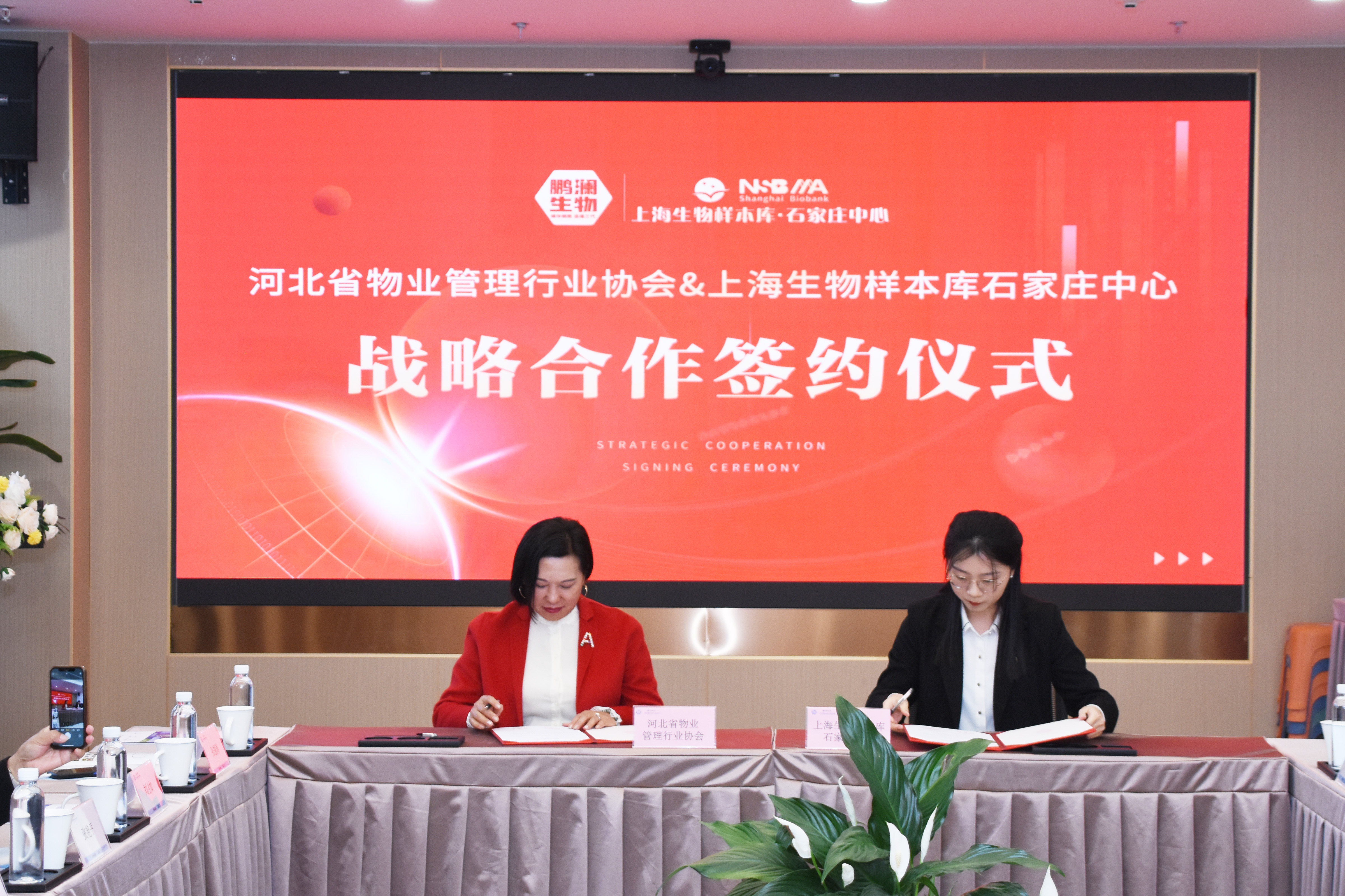 会上由河北省物业管理行业协会石益青副会长与上海生物样本库石家庄中心市场总监李晗代表双方签订了战略合作协议。