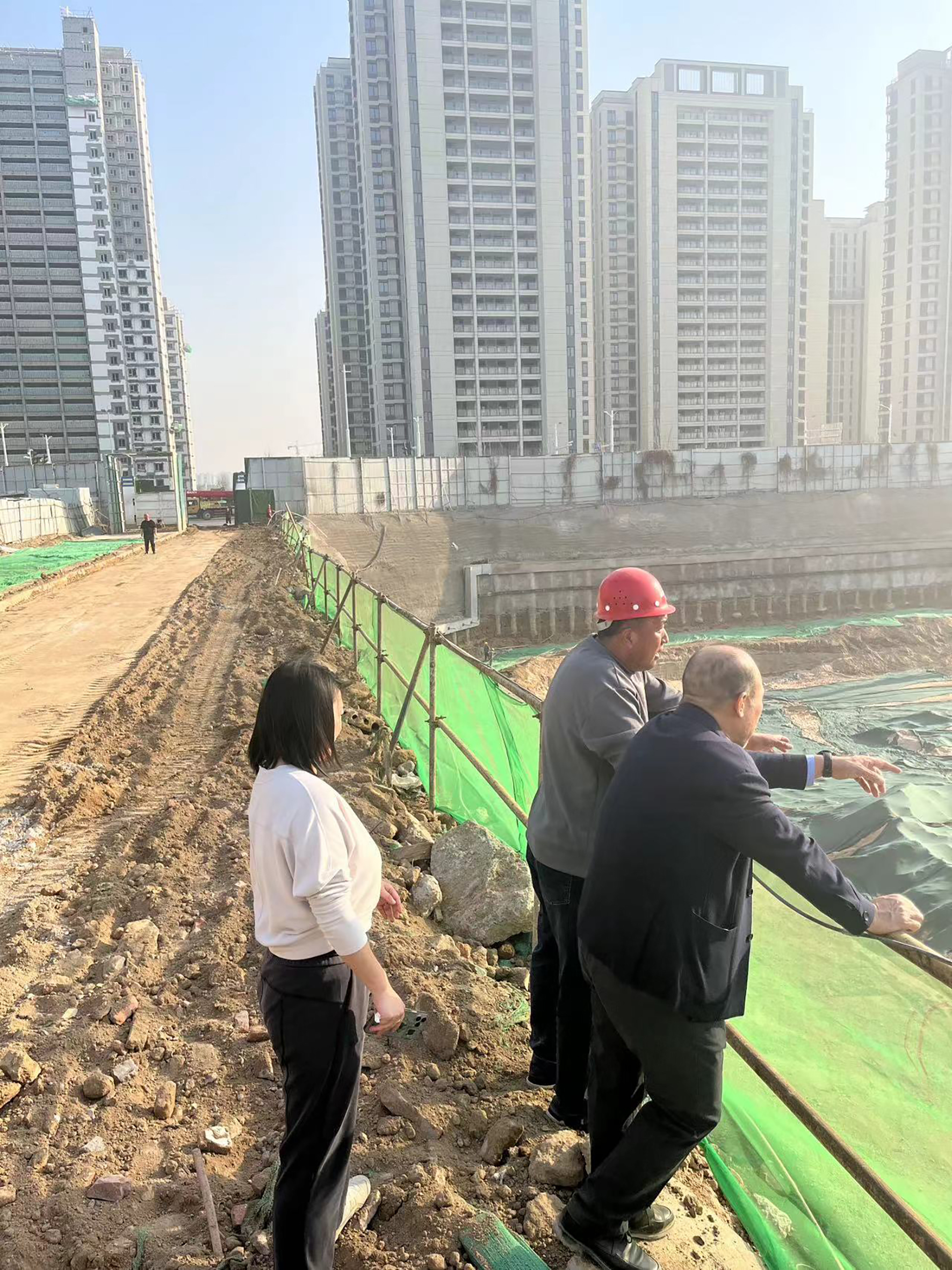 吴总现场听取了项目技术负责人李玉伟和材料员王藓对项目施工进度的介绍,对施工组织、安全管理、目标进度提出了指导意见。
